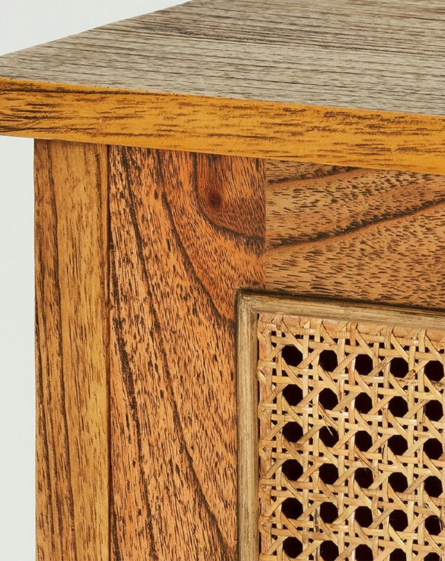 - Inserts en manguier ou en cèdre blanc (mindi) et en rotin naturel. Quincaillerie Hafele de qualité supérieure, de fabrication allemande.