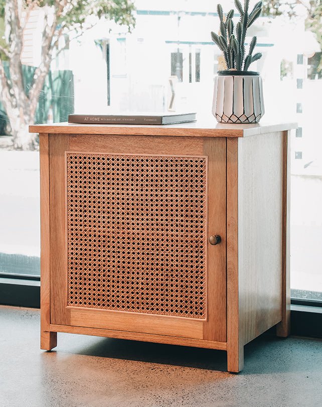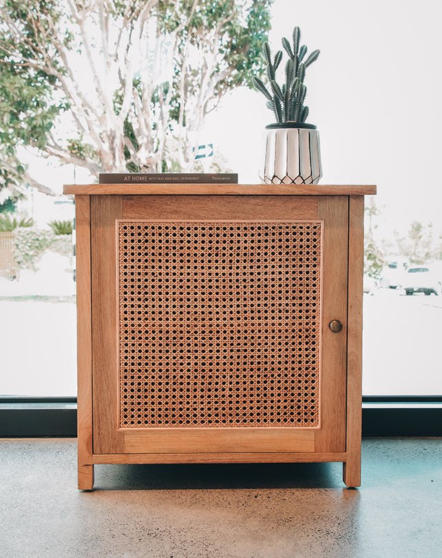 Bois de manguier ou cèdre blanc (mindi) et rotin issus de sources durables.